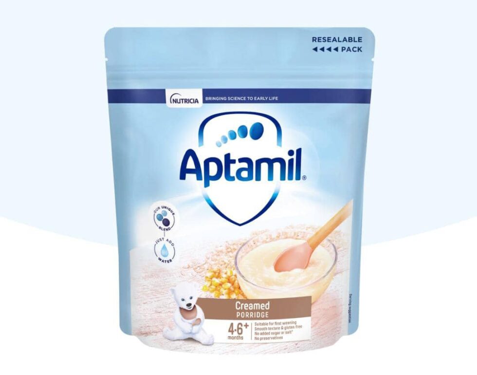 Milled corn and rice porridge with milk. The smooth texture of our creamed porridge makes it suitable as a first weaning food.