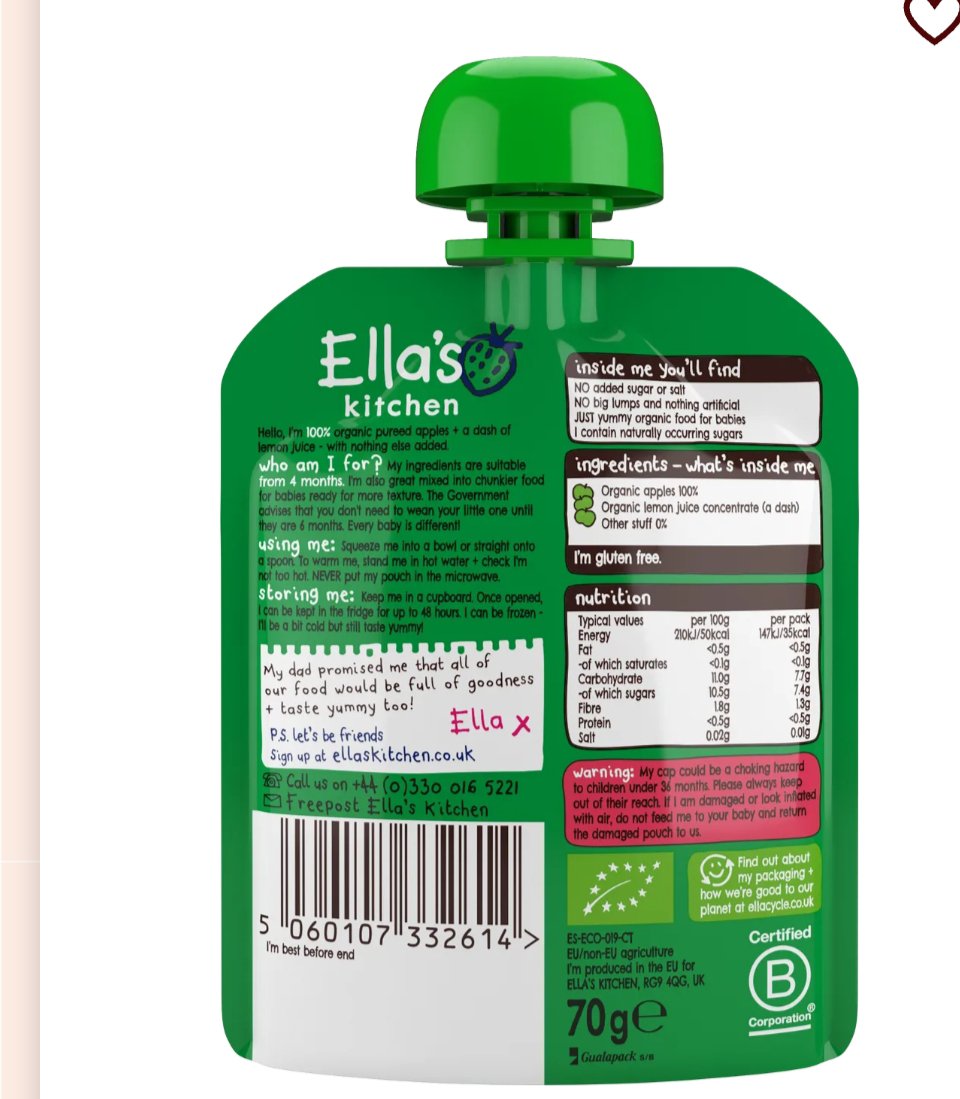 100% organic pureed apples with a dash of lemon juice – nothing else added, not even water.