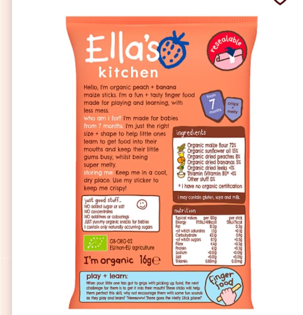 ELLA’S MELTY STICKS (peach& banana) 7m+