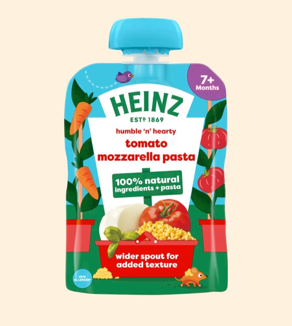 “Mealtime made easy! ???? Heinz tomato Mozzarella Pasta Shapes Pouch is packed with nutritious goodness and is perfect for on-the-go meals. Simply warm in hot water, check the temperature, and serve. Squeezable, resealable, and delicious – a perfect snack for your little one! ????????”