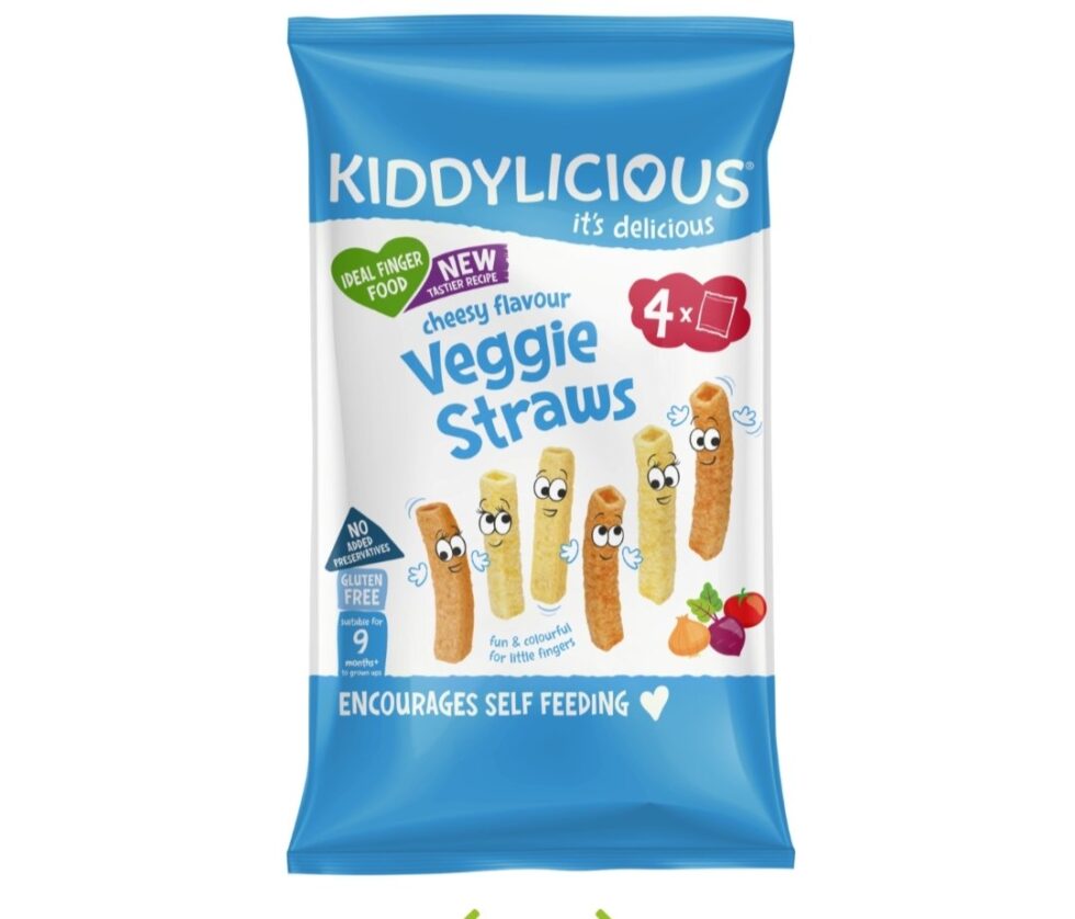 Veggie straws – Potato starch (30%), rapeseed oil, rice flour (19%), yellow pea flour (18%), cheese flavour seasoning (rice flour, natural flavouring, onion powder, yeast extract powder), potassium chloride (natural way to keep the texture melty), tomato powder, salt, beetroot powder.