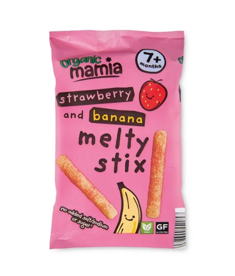 Strawberry and Banana flavour melty sticks. Suitable from 7 months