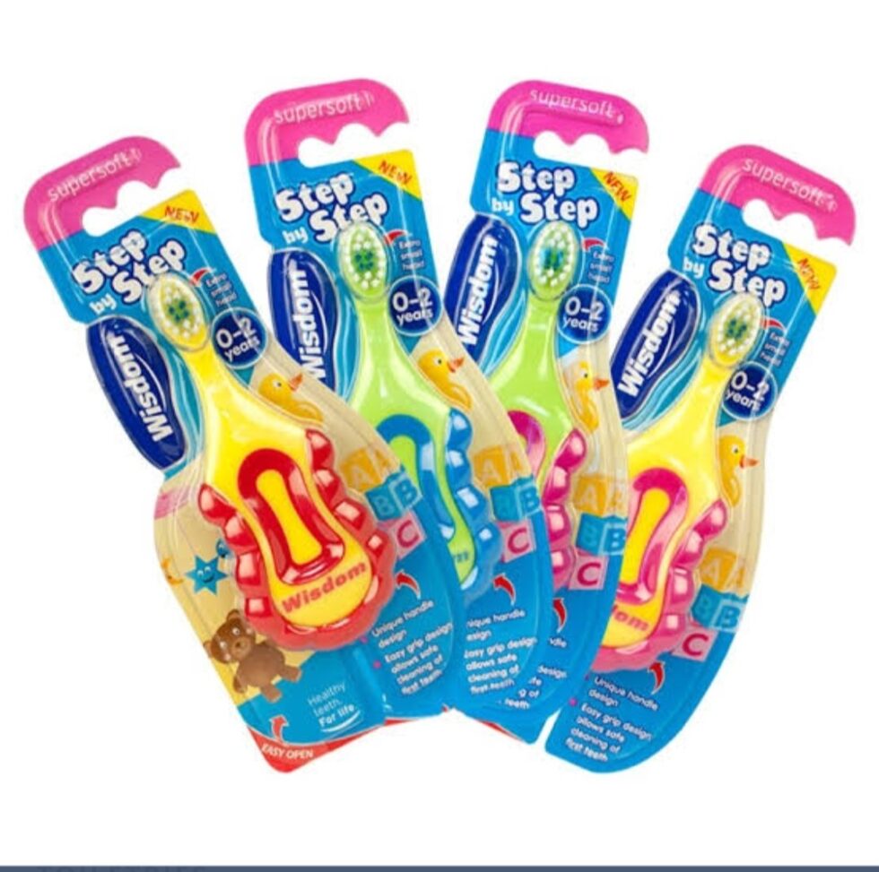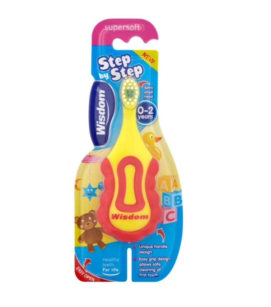 Wisdom Step by Step products help establish good brushing habits. Step by Step 0-2 years is specifically designed to clean first teeth.
