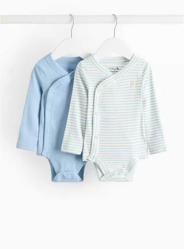 Blue Stripe Wrap- Front Bodysuit 2Packs 18 -24