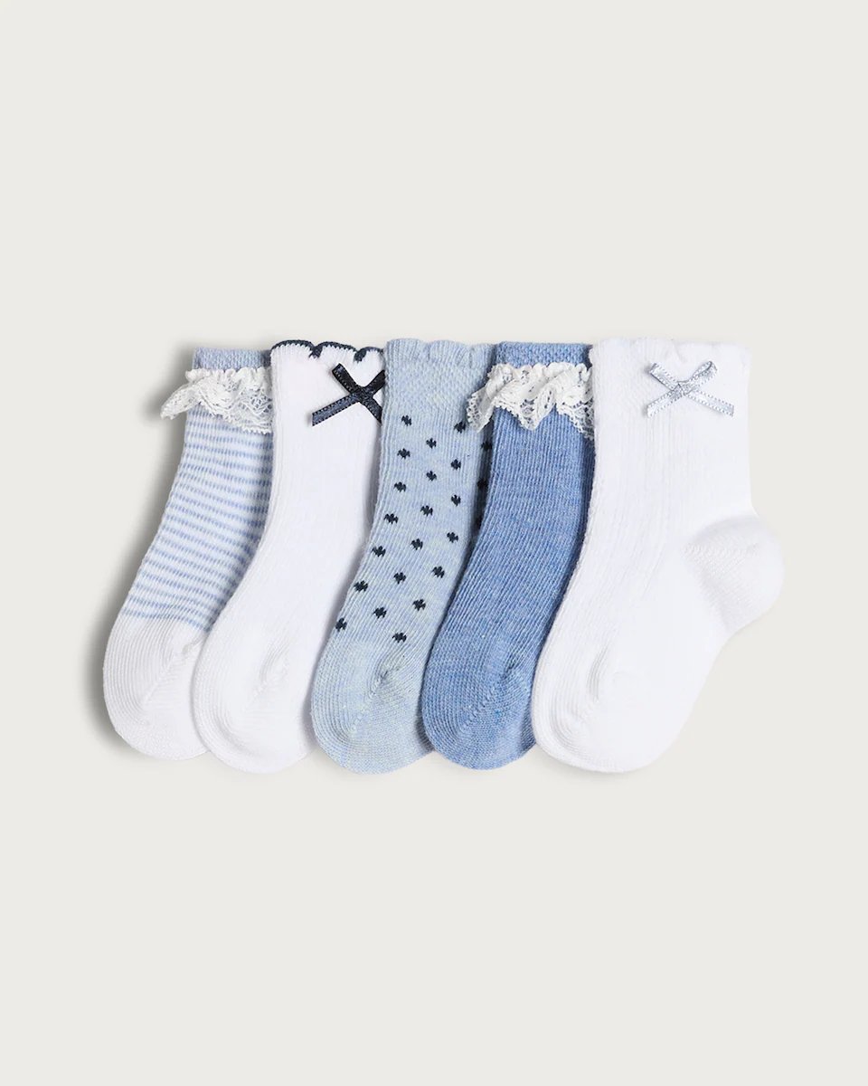 This item: F&F Baby 5 Packs Cotton Rich Lace And Bow Ankle Socks In Blue