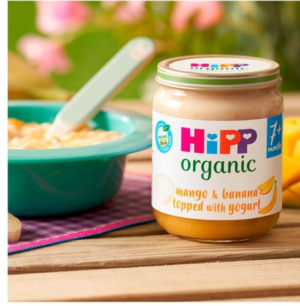 HIPP ORGANIC MANGO & BANANA TOPPED WITH YOGURTS BABY FOOD JAR 7+ MONTHS